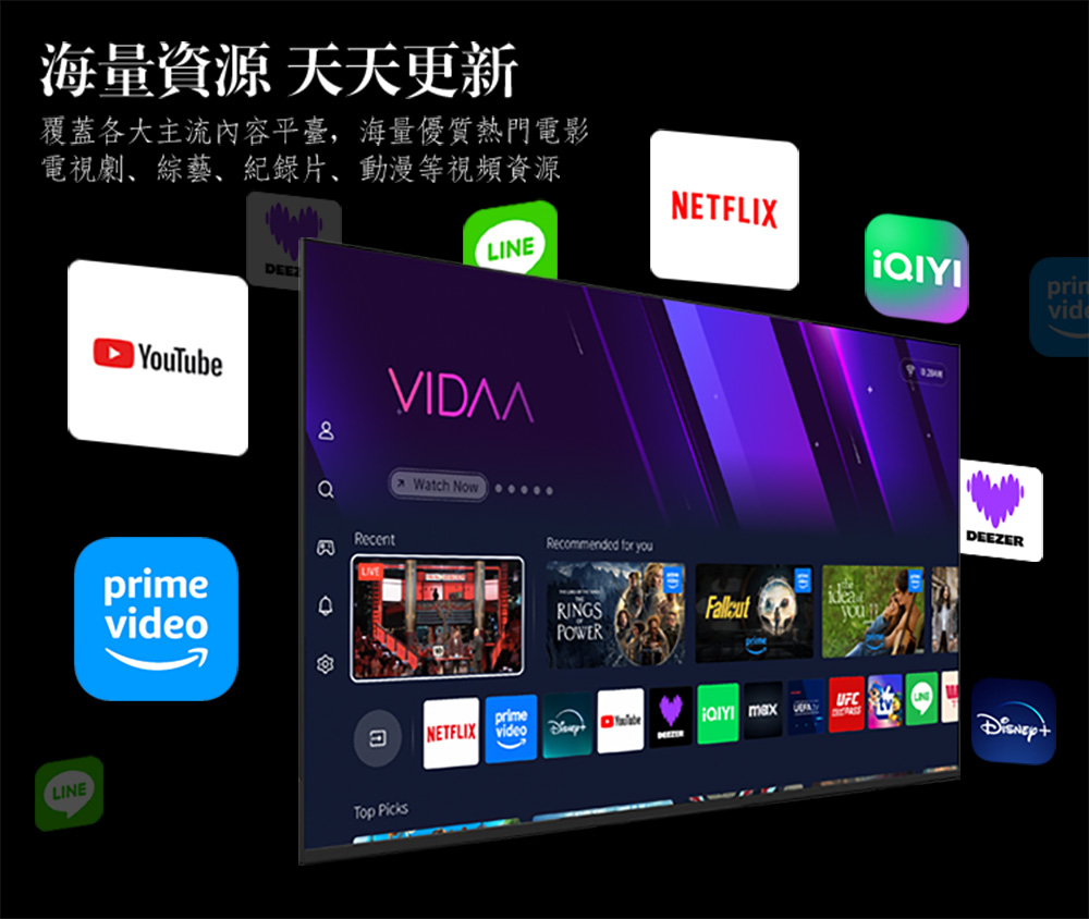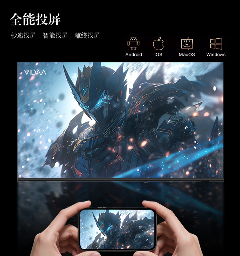 超薄無邊況設計,打破框架實現三邊無框效果,開闊更寬廣視野!多款應用程式秒撥放,最新應用程式任你下載,強大電視性能,無鋸齒、高清晰、超高解析率,帶給你全新體驗及視覺感受!
